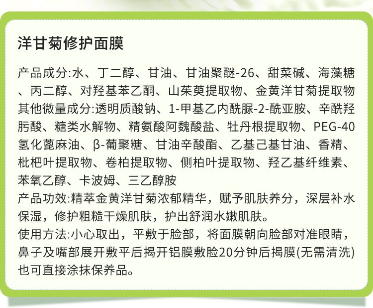 蒂曼莱儿 洋甘菊修护面膜25ml*8片 改善粗糙/干燥肌肤,收缩毛孔,紧实弹性,水嫩靓丽
