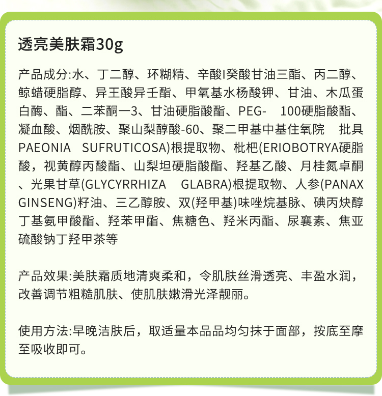 蒂曼莱儿 透亮美肤霜30g 改善黯哑/粗糙/干燥肌肤,抑制黑黄色素,提亮肤色