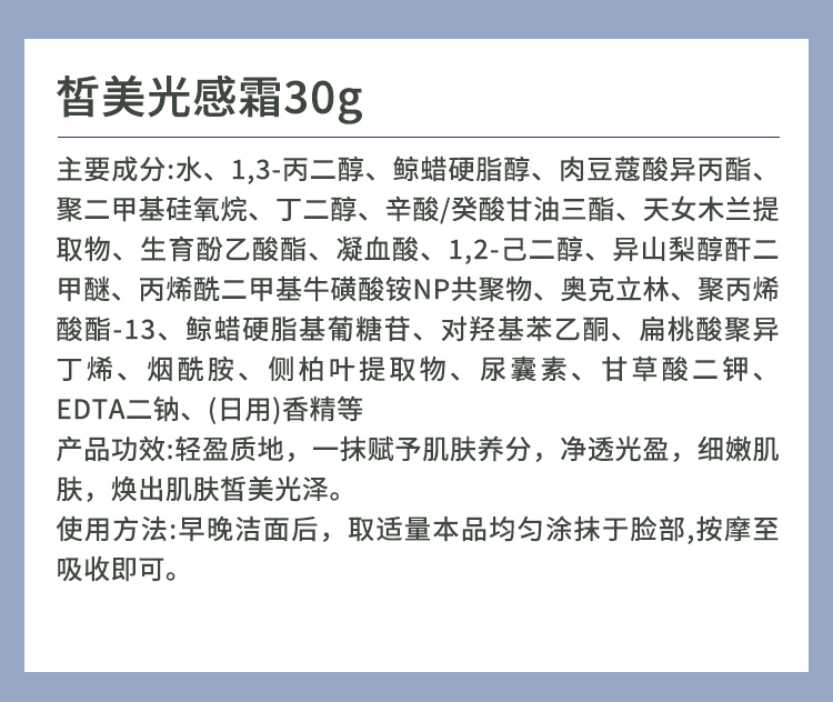 美珈豪 皙美光感霜30g 提亮美化,改善暗黄/粗糙肤质,补充水分,提升肌肤光泽度