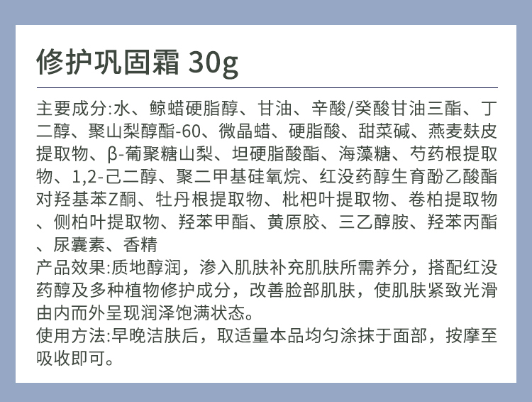 美珈豪 修护巩固霜30g 质地醇润,补充养分,改善黯哑、粗糙肌肤,紧致光滑,润泽饱满