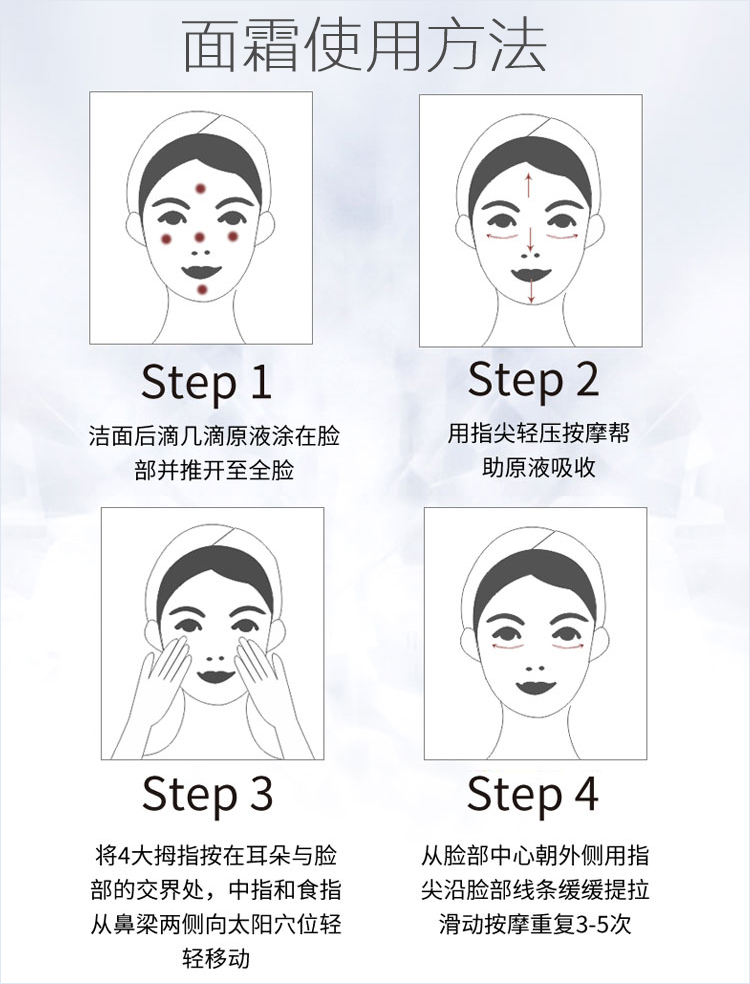 渗入肌肤补充肌肤所需养分,搭配红没药醇及多种植物修护成分,改善脸部肌肤,使肌肤紧致光滑,由内而外呈现润泽饱满状态