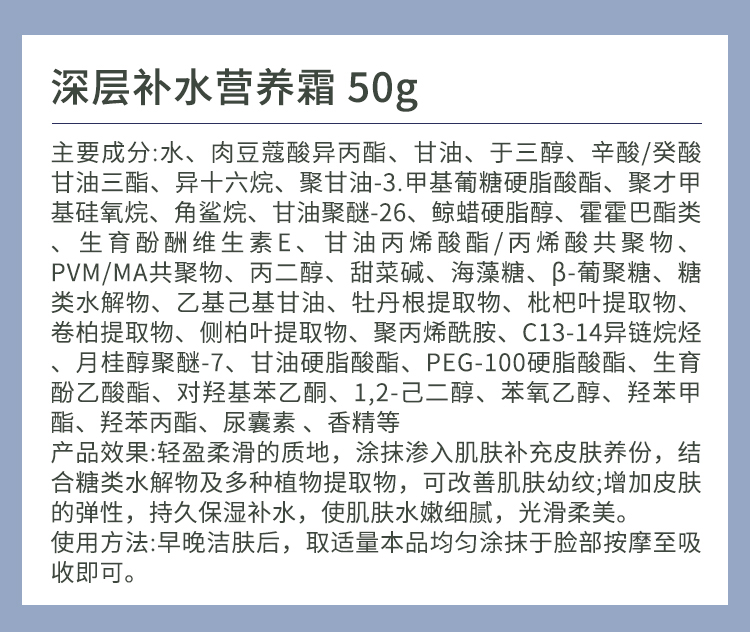 美珈豪 深层补水营养霜50g 补充养份,改善幼纹,增加弹性,持久保湿,水嫩细腻