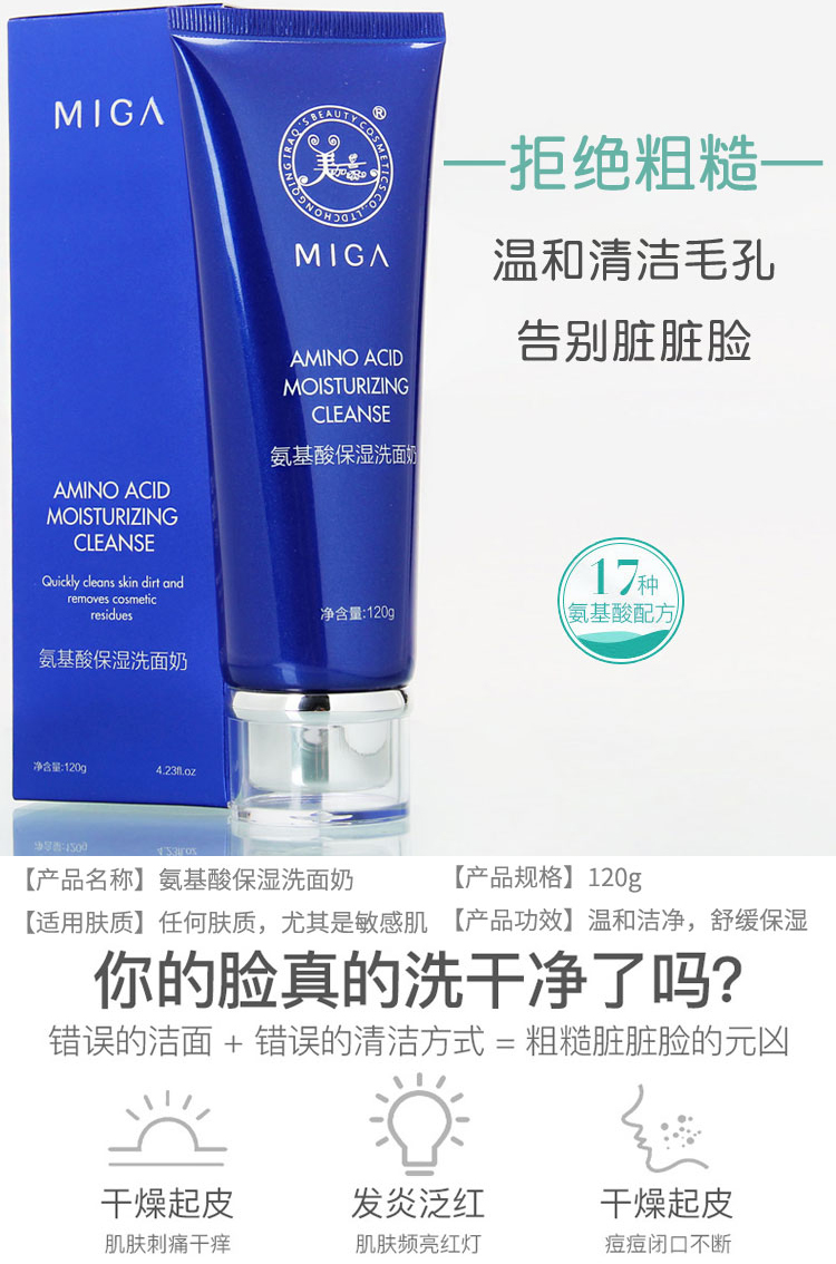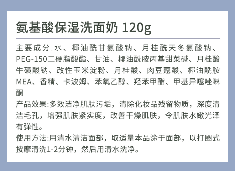 美珈豪 氨基酸保湿洗面奶120ml 洁净污垢,改善干燥,水嫩光泽,紧实弹性