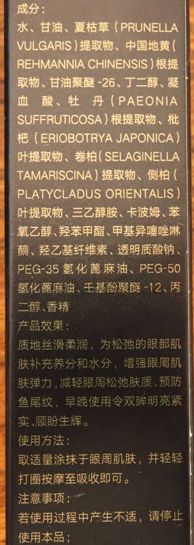 质地丝滑柔润,为松弛的眼部肌肤补充养分和水分,增强眼周肌肤弹力,减轻眼周松弛肤质、预防鱼尾纹,早晚,使用令双眸明亮紧实、顾盼生辉