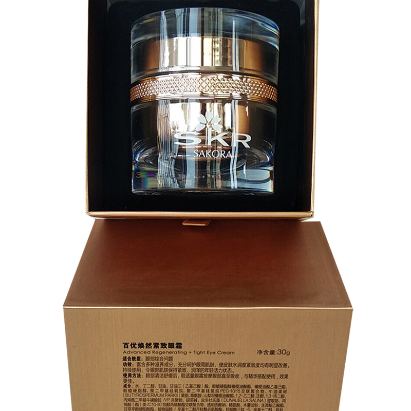 Sakora樱花 百优焕然紧致眼霜30g 主要成分:烟酰胺、泛醇、盐生杜氏藻提取物、甜菜碱 主要功效:富含多种滋养成分,充分呵护眼周肌肤,使皮肤水润度、紧致度均有明显改善。持续使用,令眼部肌肤保持紧致、润泽的年轻活力状态 使用方法:取适量于眼周按摩至吸收,配合百优焕然紧致精华使用效果更佳。