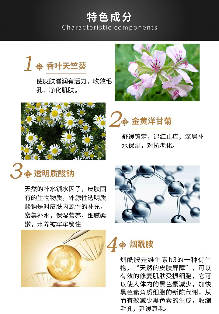 植物萃取精华唤醒鲜活肌肤,高活性褪黄祛黑成分层层焕靓肌肤,抗击氧化,令肌肤莹润靓透,由内而外散发光彩