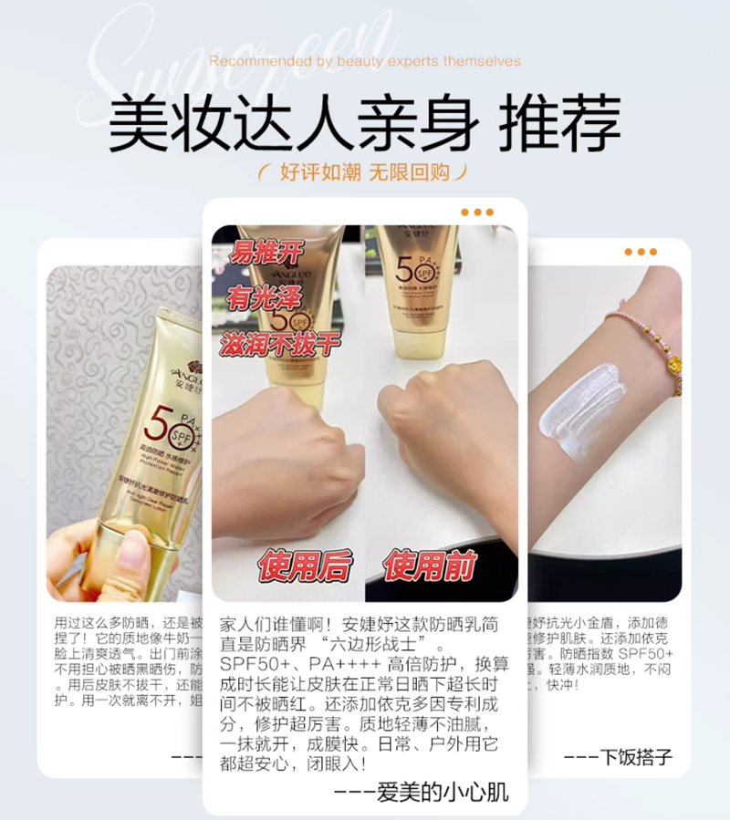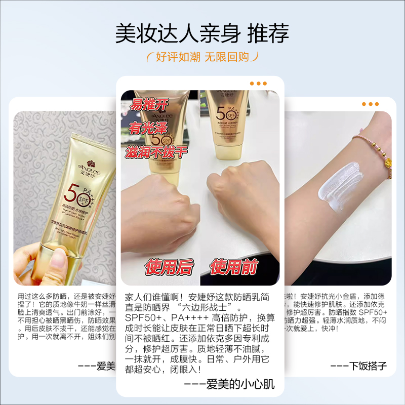 安婕妤 抗光清澈修护防晒乳50gSPF50+ 质地清爽细腻、抵御紫外线、避免肌肤晒伤和晒黑