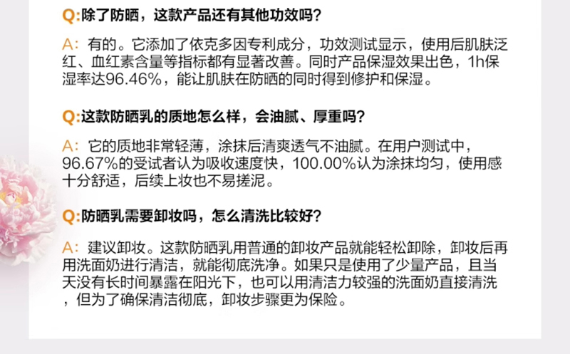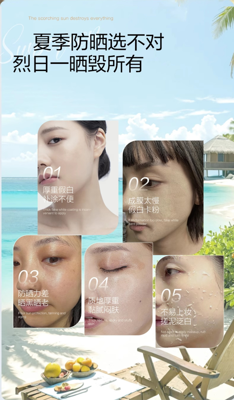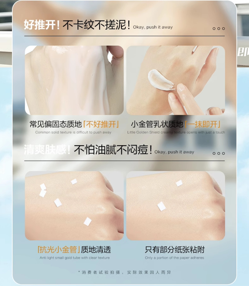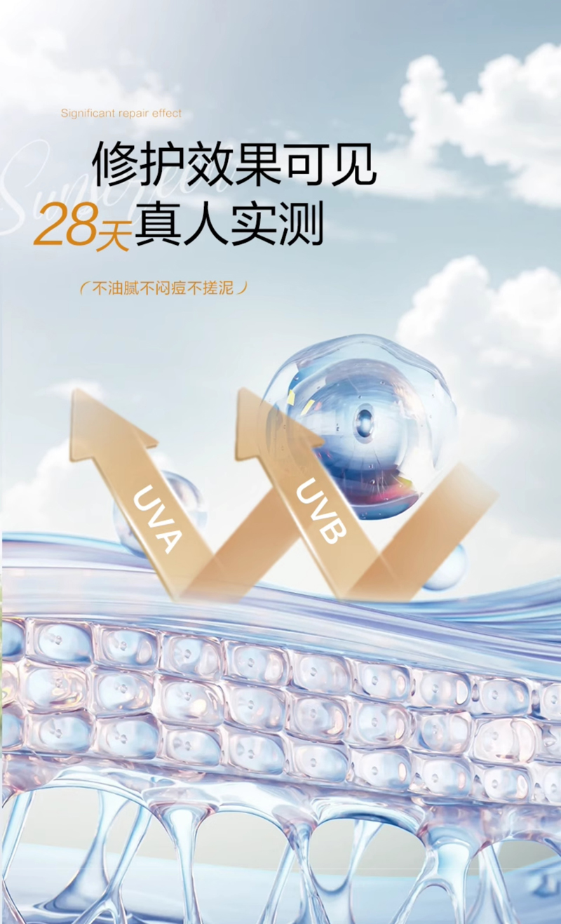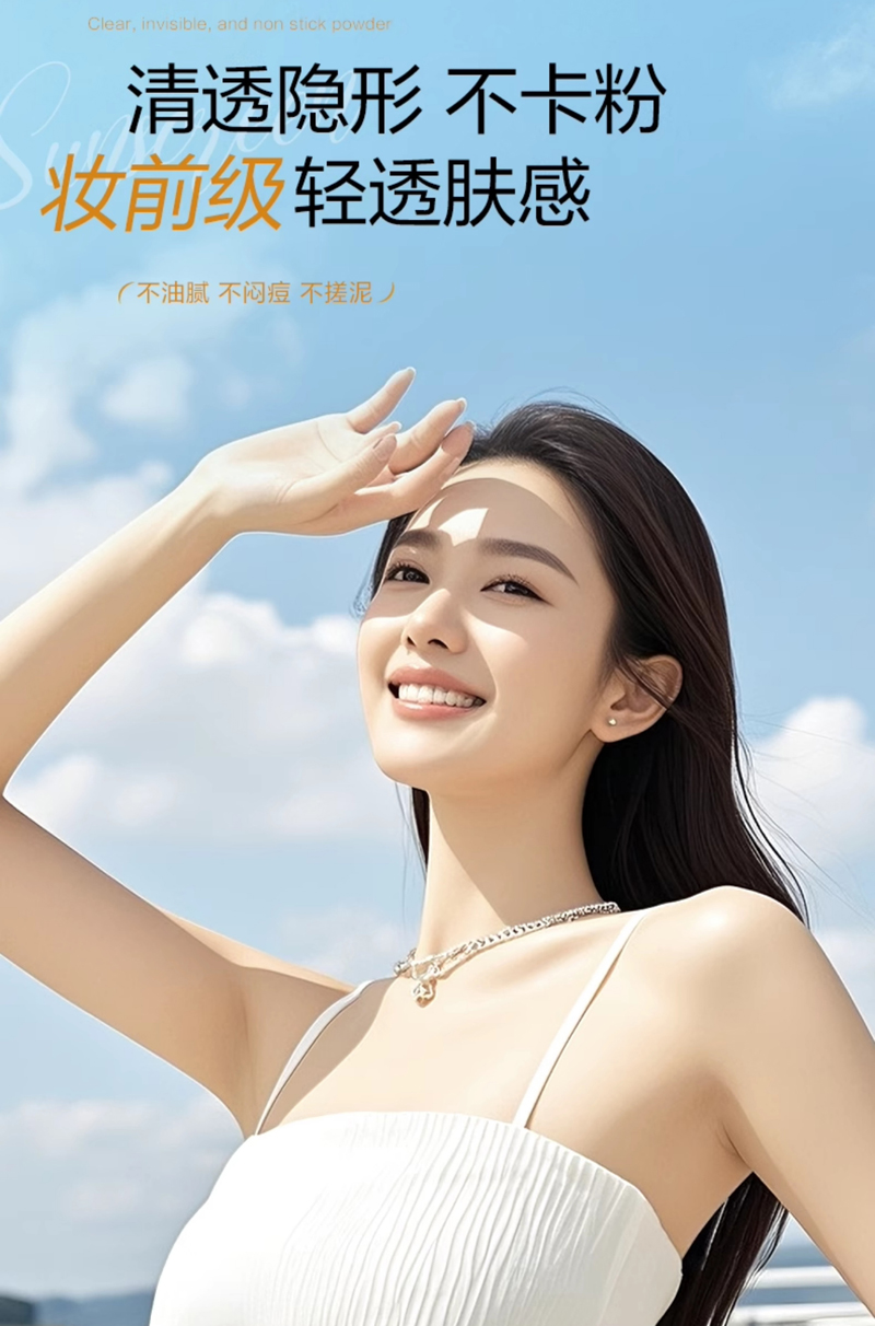 质地清爽细腻,清透质感抵御紫外线,防晒成分萃取为肌肤提供保护,保护肌肤免遭晒伤和晒黑,轻盈养肤高倍防晒修护肌肤,一抹清凉不怕骄阳