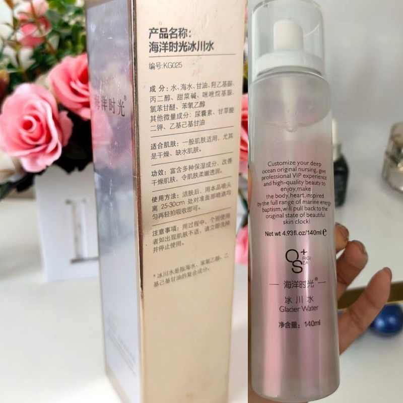 origisea海洋时光 冰川水40ml 产品说明:富含冰川泥虑出液及多种保湿成分,舒缓干燥肌肤,令肌肤柔嫩透润。 使用方法:洁肤后,用本品喷头离25--30cm处对准面部喷洒均匀再轻拍吸收即可。