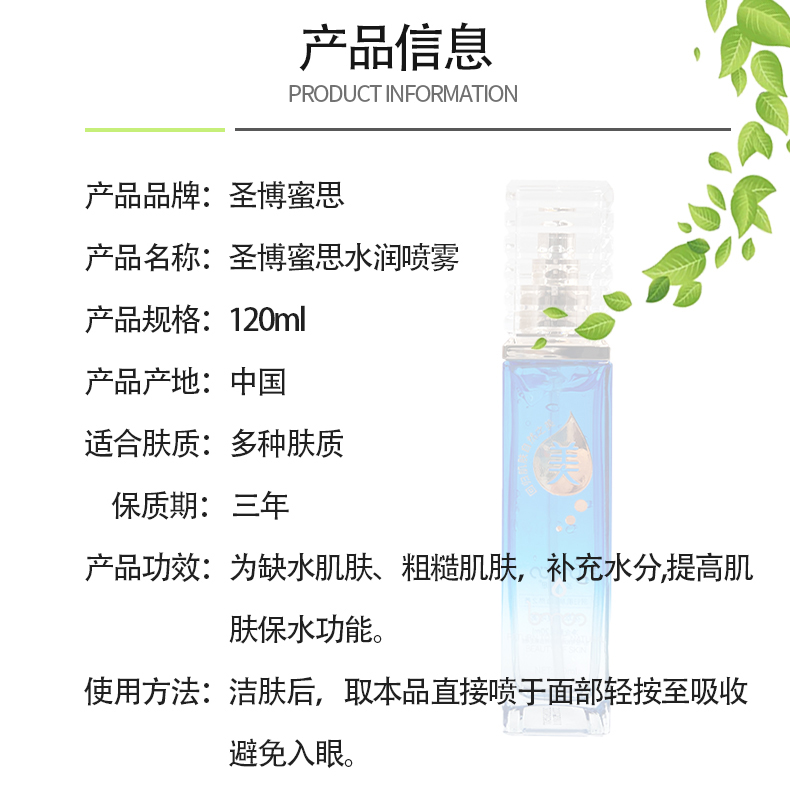 圣博蜜思 水润喷雾120ml 密集补水、提升肌肤水润度、修护受损、改善干燥、肌底水润充盈