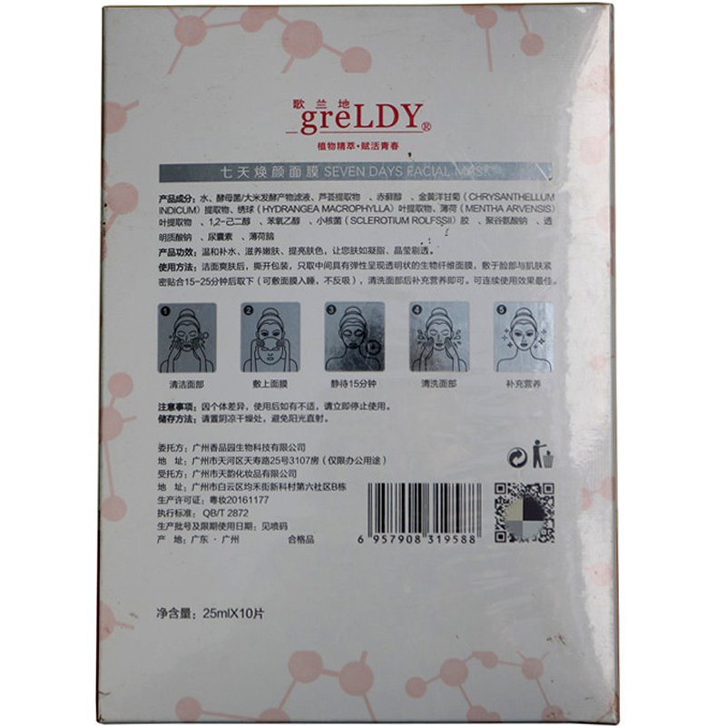 歌兰地 七天焕颜面膜25ml*10片 温和补水、滋养嫩肤、提亮肤色、晶莹剔透
