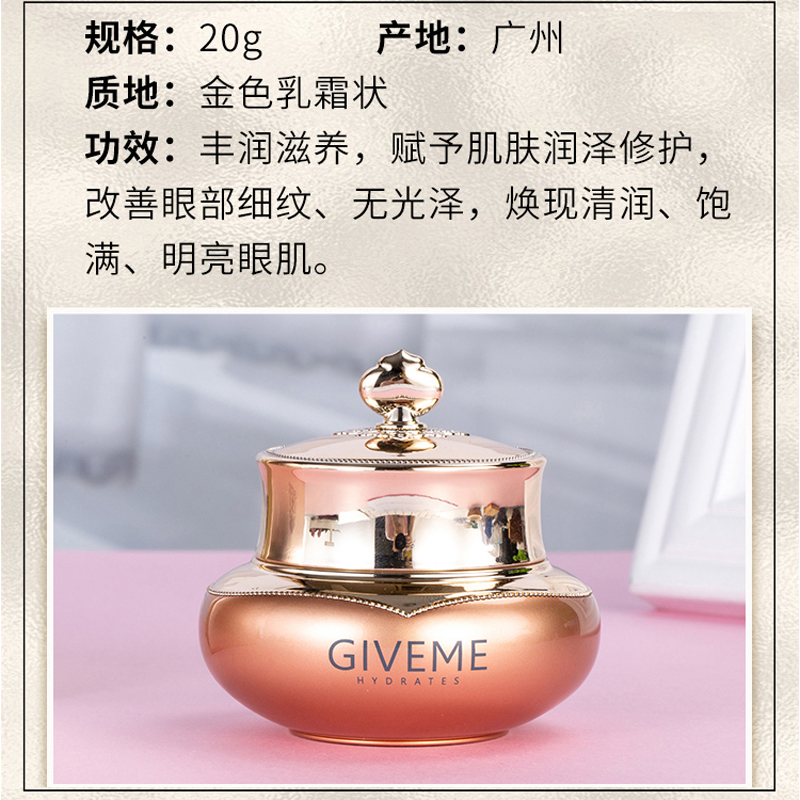 含有纳米金成分,可加速眼周微循环,提拉紧致,缓解眼部细纹、干纹、眼袋、黑眼圈等问题