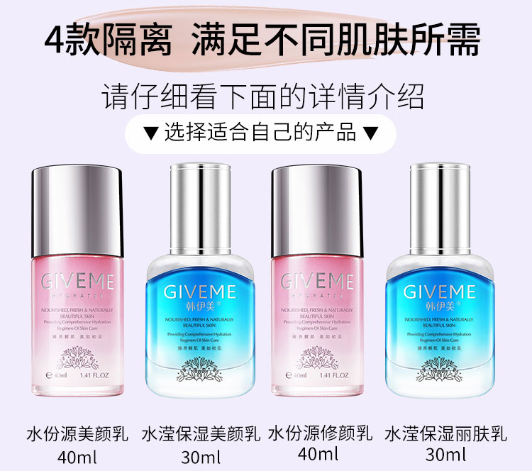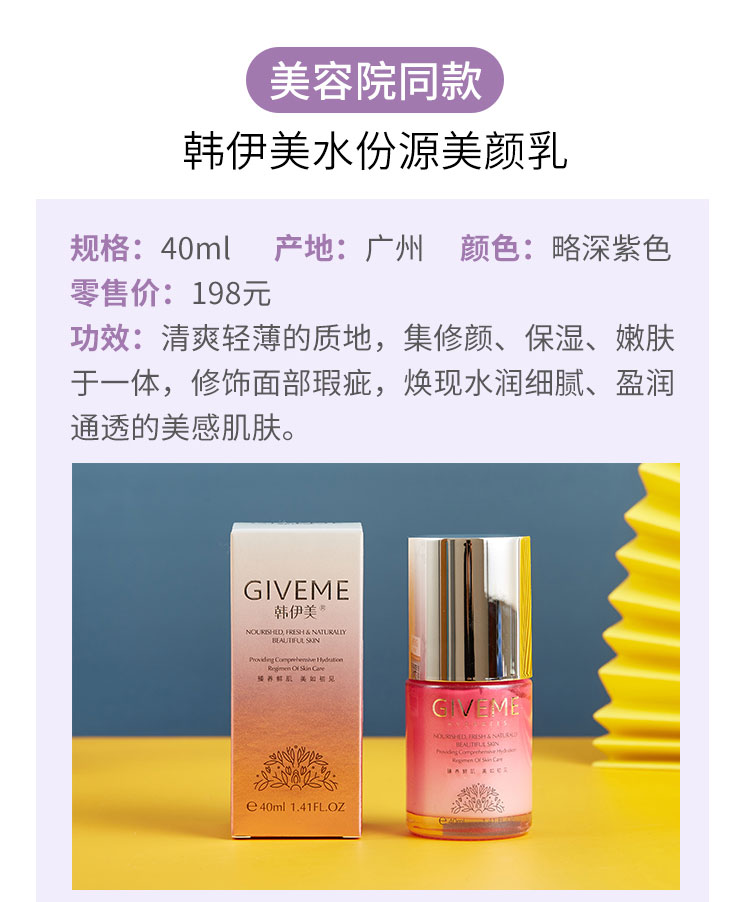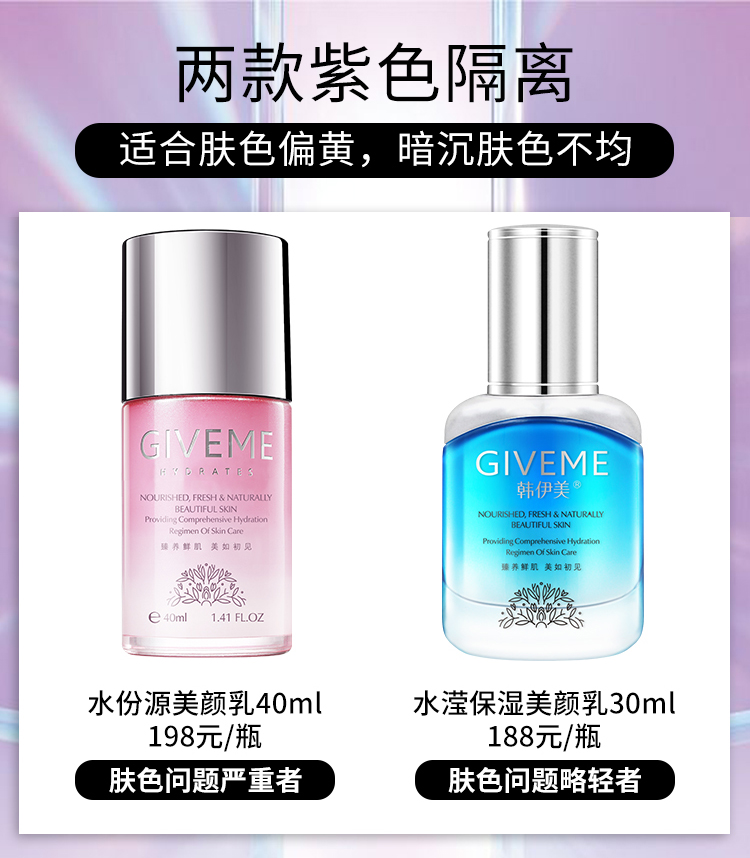 韩伊美 水份源美颜乳40ml(紫色隔离)质地轻薄、修饰粗大毛孔、焕现细腻、光泽透亮、改善暗黄/肤色不均肌肤