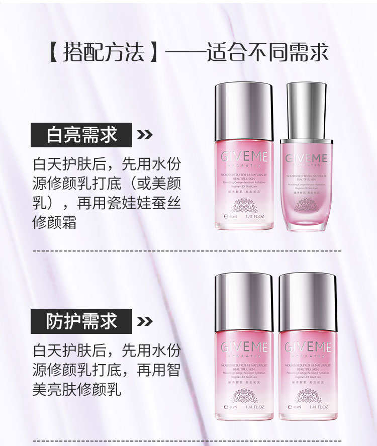 清爽轻薄的质地,集修颜、保湿、嫩肤于一体,修饰面部瑕疵,焕现水润细腻、盈润通透的美感肌肤