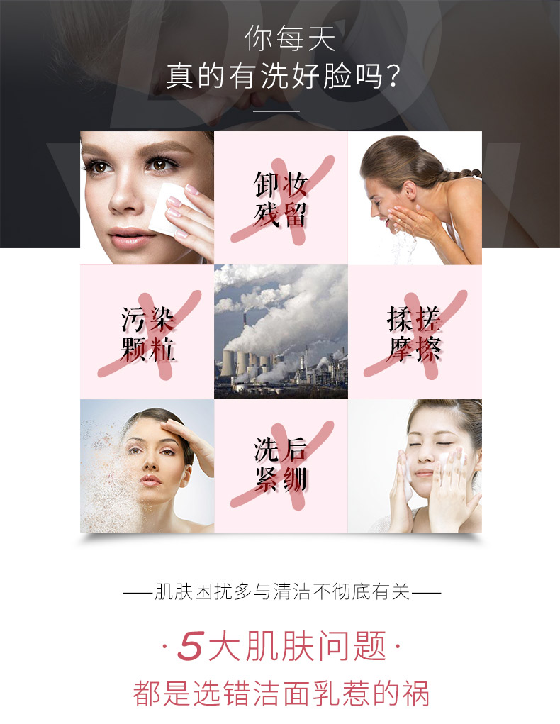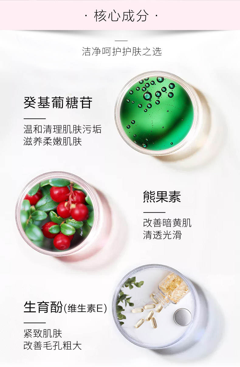 它完全 不含皂,性情温和,PH值为5.5弱酸性的配方,而且洗后肤质柔嫩光滑不紧绷,并且内含抗老化成份维他命E.以及黑色素分解酵素成份,能使黑色素分解,洗脸,亮白一次完成。