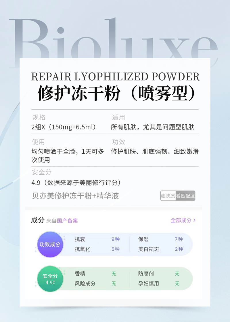 BIOLUXE修护冻干粉(喷雾型)2组 改善红敏损伤、医美术后、痘印痘坑、暗淡粗糙、老化皱纹肌肤