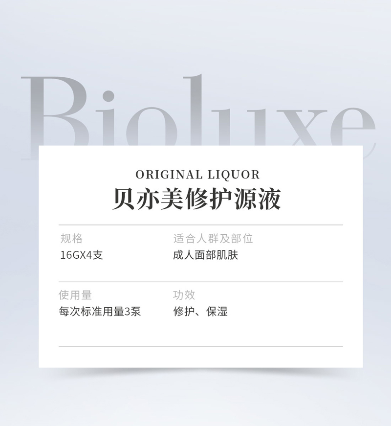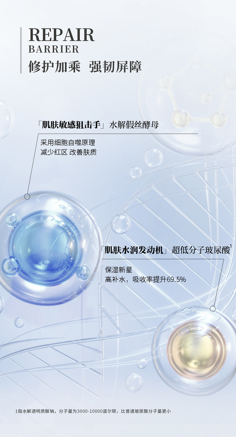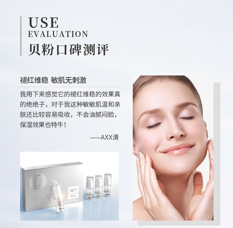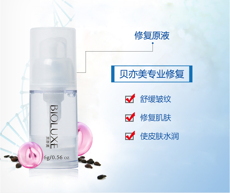 主要功效:本品采用专有修复技术,修复肌肤,舒缓皱纹,使皮肤白皙、润泽而富有弹性。