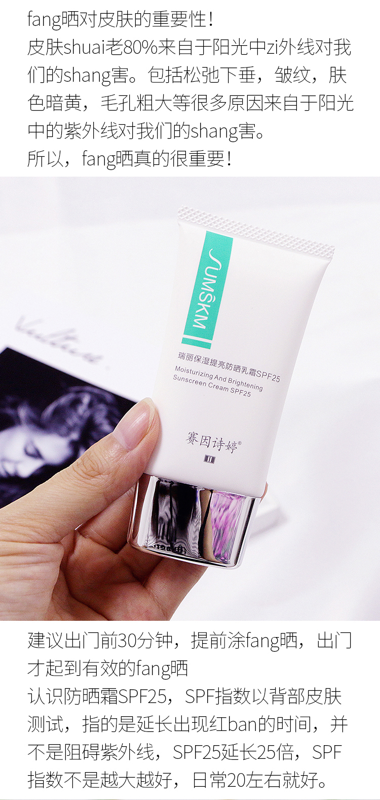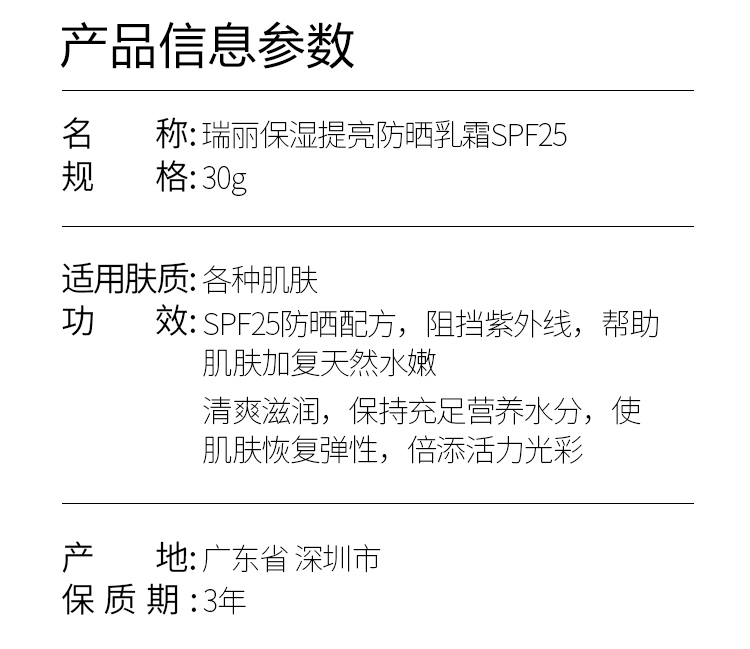 1.SPF25防晒配方,阻挡紫外线,帮助肌肤恢复天然水嫩;