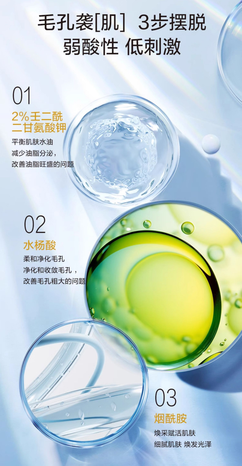 富含多种毛孔收敛成分,从毛孔内部开始调理,集舒缓、修护、保湿功于一体,温和可靠地解决肌肤毛孔扩张、粗糙等问题,帮助恢复毛孔的弹性,并补充肌肤所需营养及水分,调理皮脂分泌,明显收缩毛孔,使肌肤平滑柔嫩、细致无暇