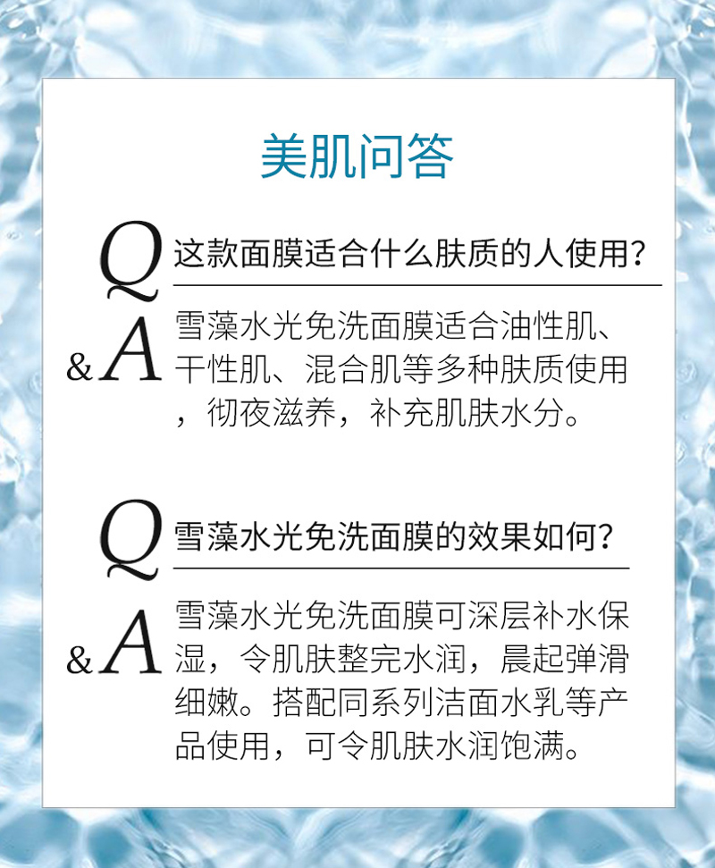 • 商品名称:安婕妤 雪藻水光免洗面膜120ml 免洗质地、清爽易吸收、弹润保湿、修护日间损伤、紧致透亮