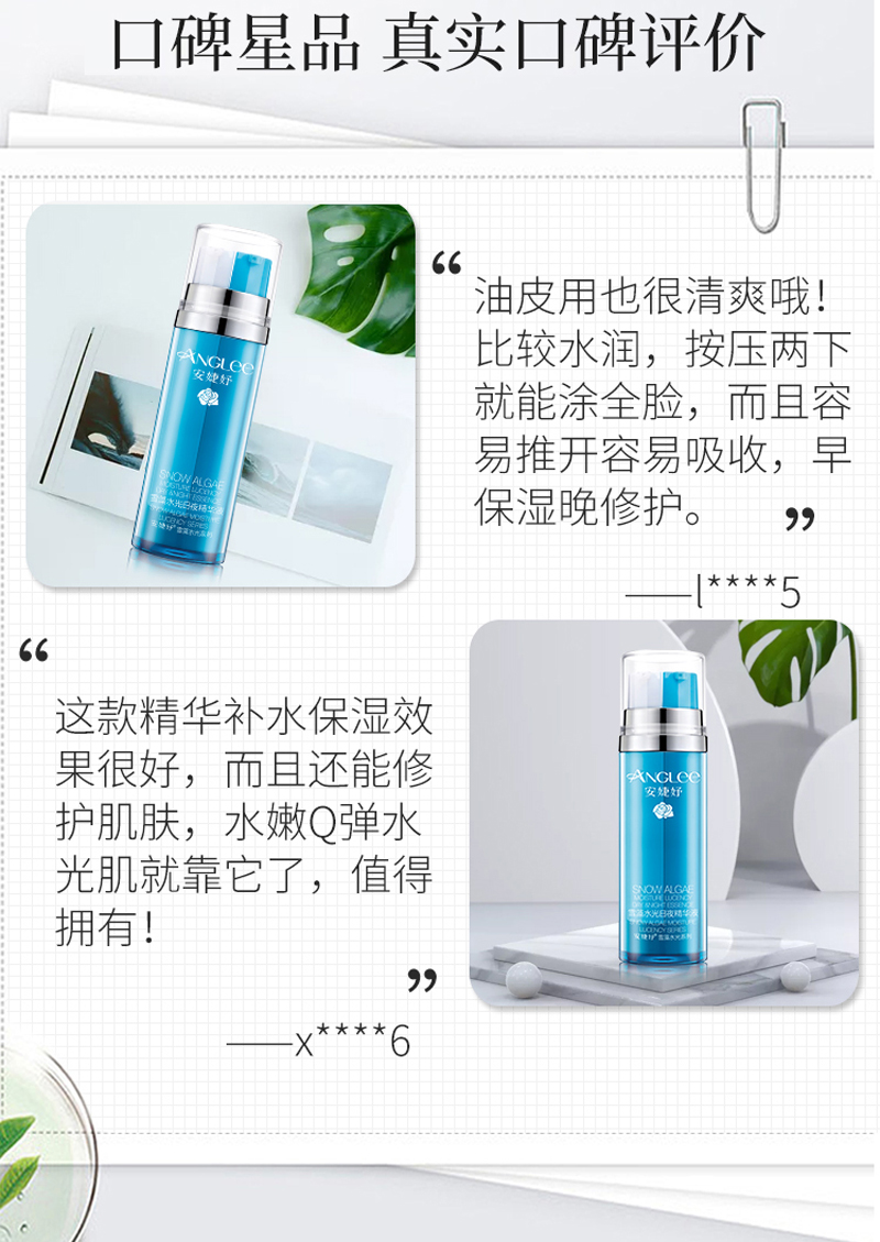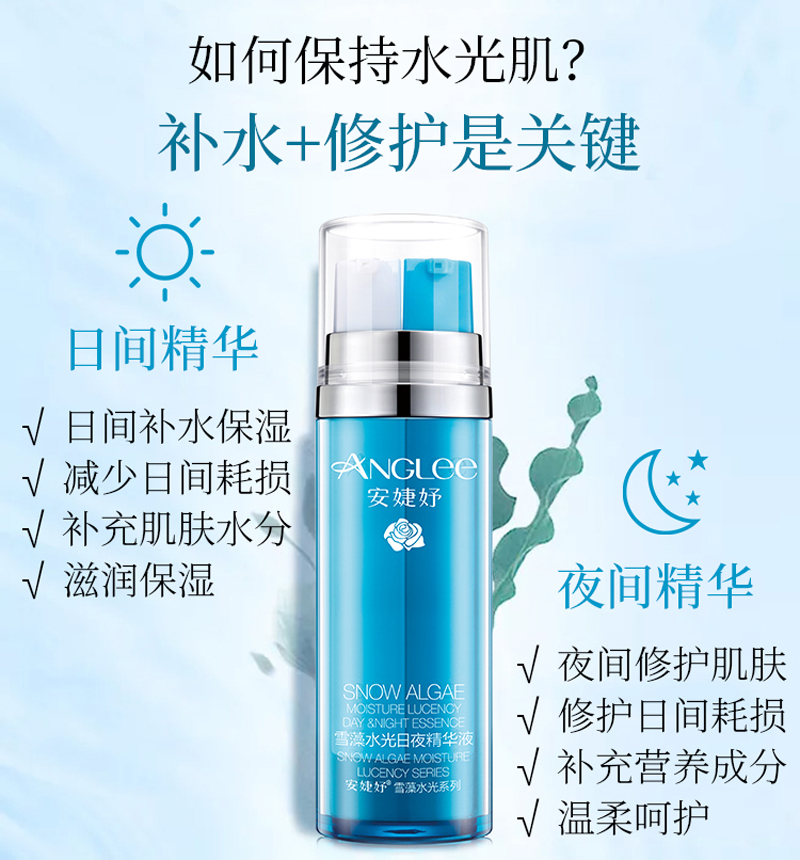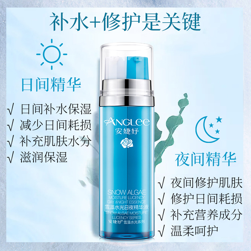 • 商品名称:安婕妤 雪藻水光日夜精华液15ml*2支 早保湿/晚修护、舒缓维稳、密集滋养、柔润细腻、改善干燥粗糙肌肤