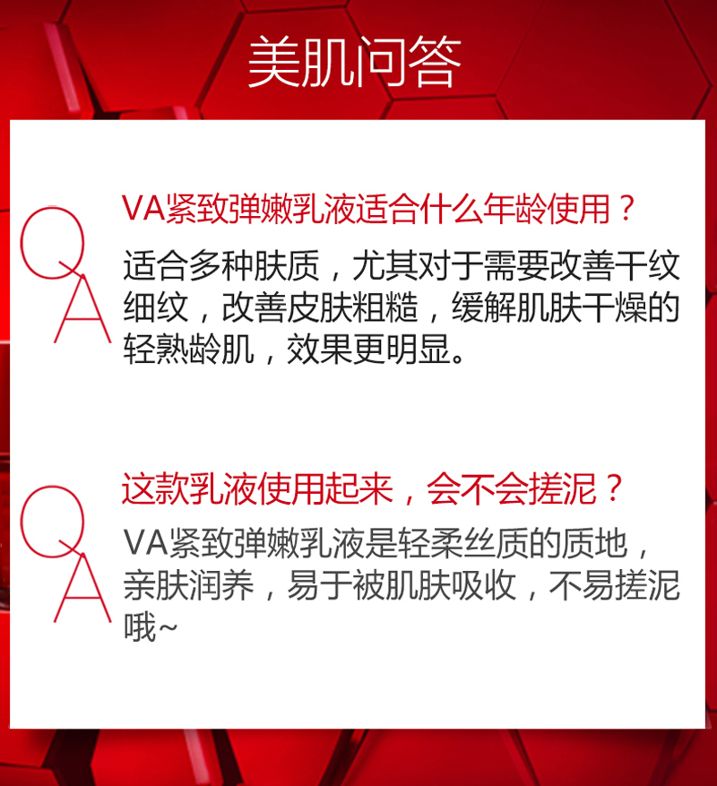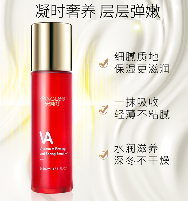 • 商品名称:安婕妤 VA紧致弹嫩乳液100ml 细腻质地、保湿滋润、淡化细纹、紧致轮廓、水嫩弹润、丰盈饱满