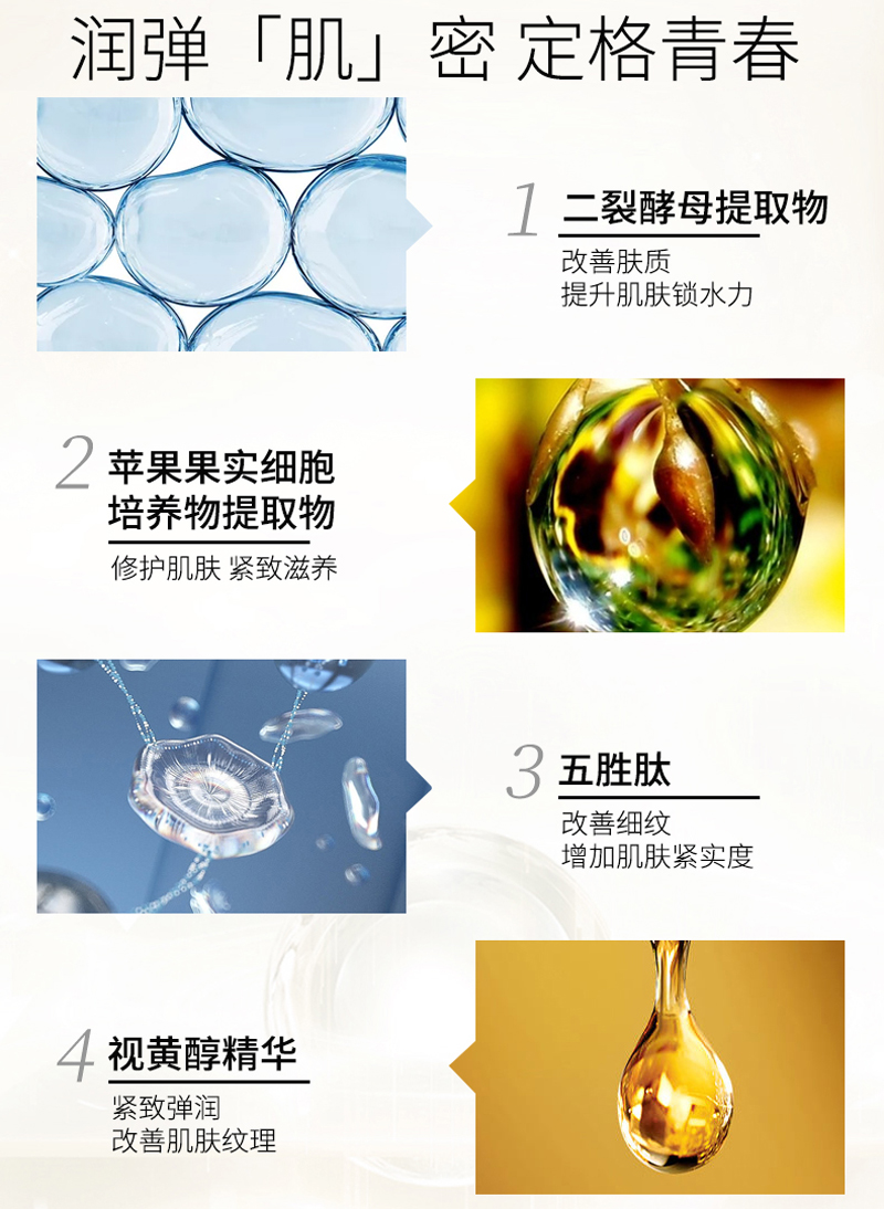 细腻乳液质地,初次使用肌肤感觉更柔软、光滑,触感水润紧致
