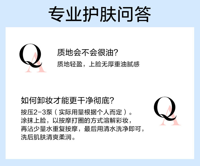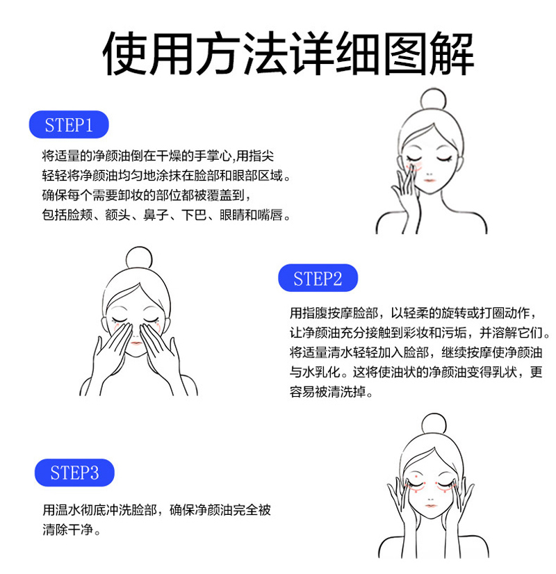 产品功:改善各种令肌肤老化的顽固彩妆,皮脂污垢。配方科技,可温和防止肌肤因洗、卸所产生的干燥及紧绷感,淡化面部幼纹,收敛毛孔之功,让卸妆后的肌肤恢复平滑,细嫩质感,守护青春光彩! 内含橘皮苷、荷荷巴油、角鲨烯三大成分,精油卸妆,不含矿物油,省时省力,一瓶双,洗卸二合一,净颜油不是卸妆,而是卸“脏”。