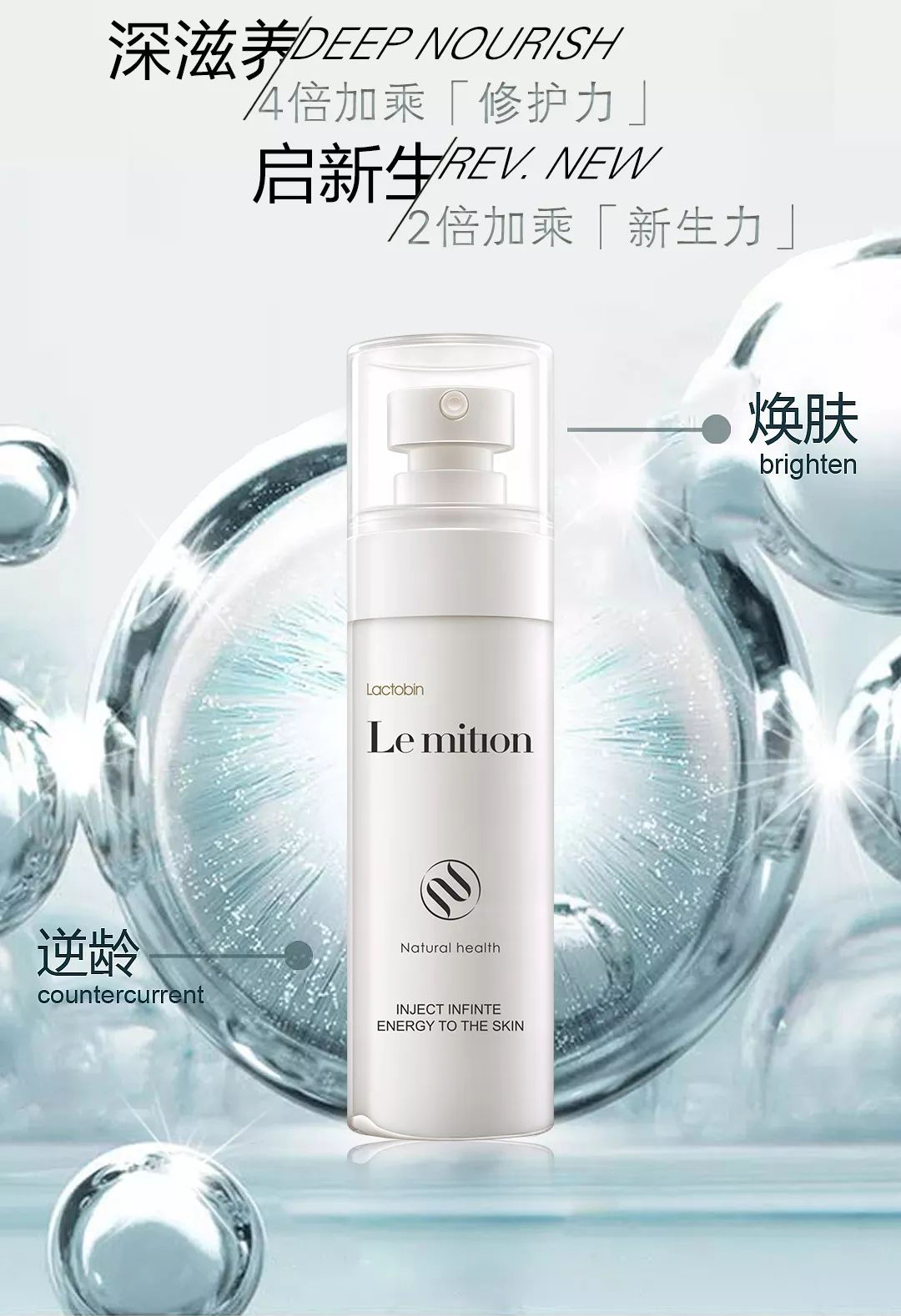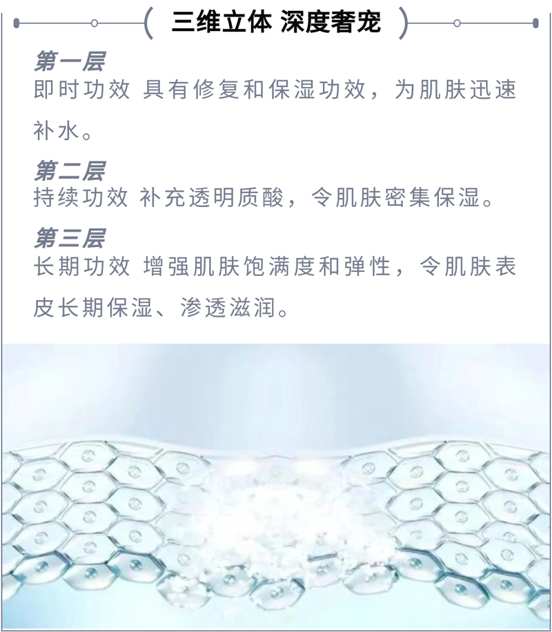 丰富精粹补充肌肤营养 提升表情肌的弹性 呈现张力十足的肌肤 滋养肌肤组织 滋润角质层呈现水凝 红润的健康状态