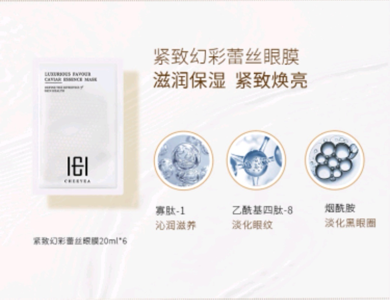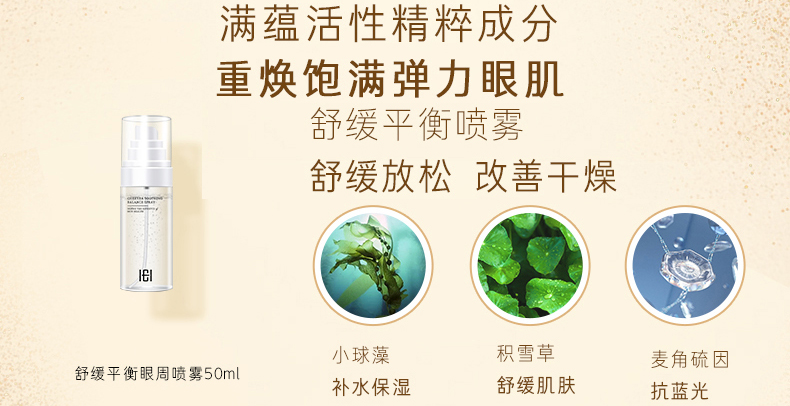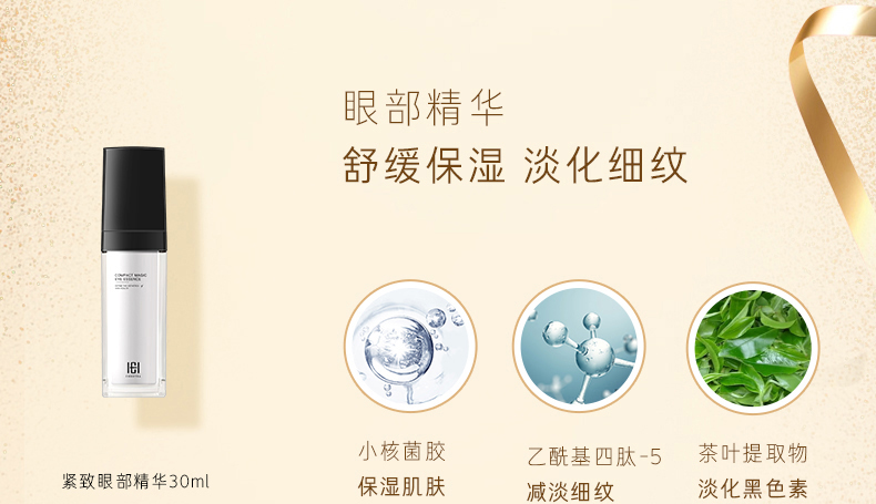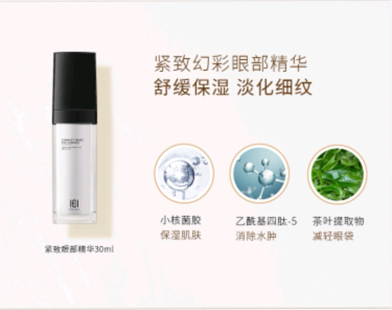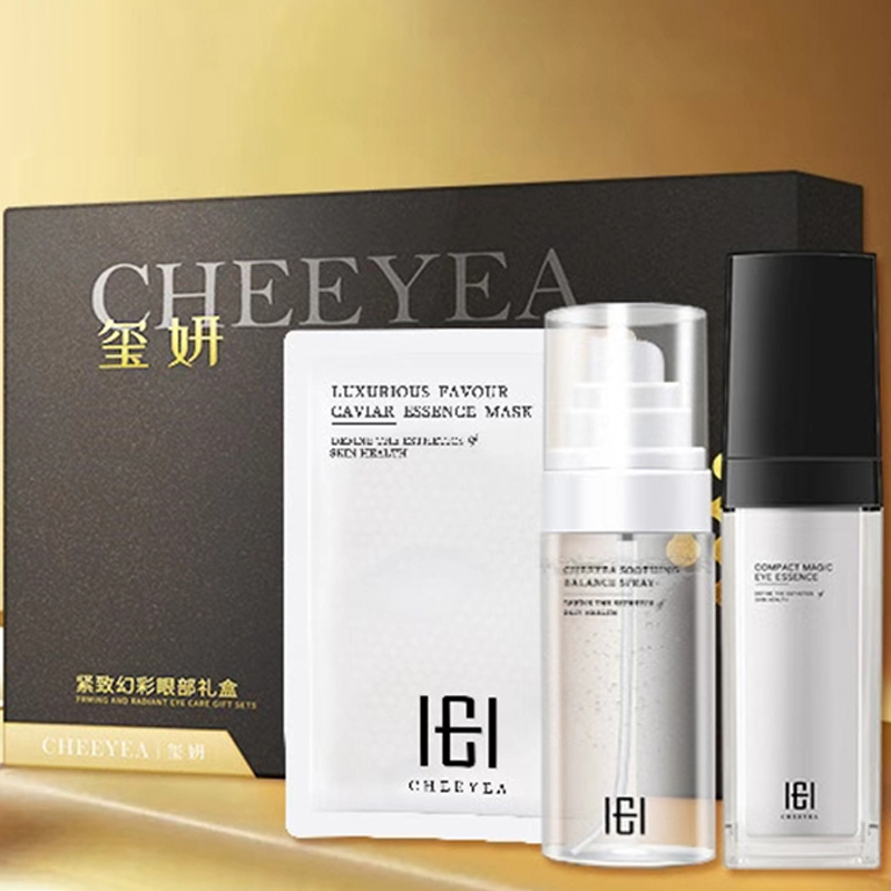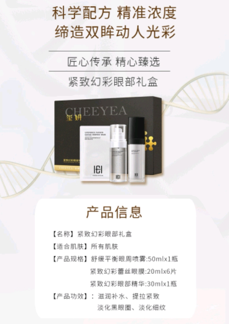 1.紧致幻彩眼部精华30ml:密集修护效淡化黑色圈 2.紧致幻彩眼膜20ml*6片:淡化黑眼圈,提亮眼周肤色 3.舒缓平衡眼周喷雾50ml:有效抗蓝光,防护眼周肌肤