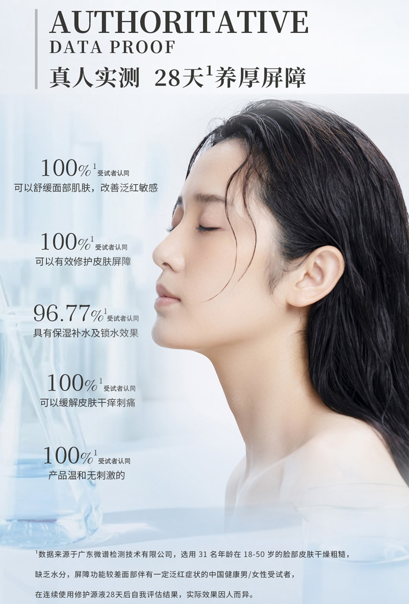 主要功效:本品采用专有修复技术,修复肌肤,舒缓皱纹,使皮肤白皙、润泽而富有弹性。